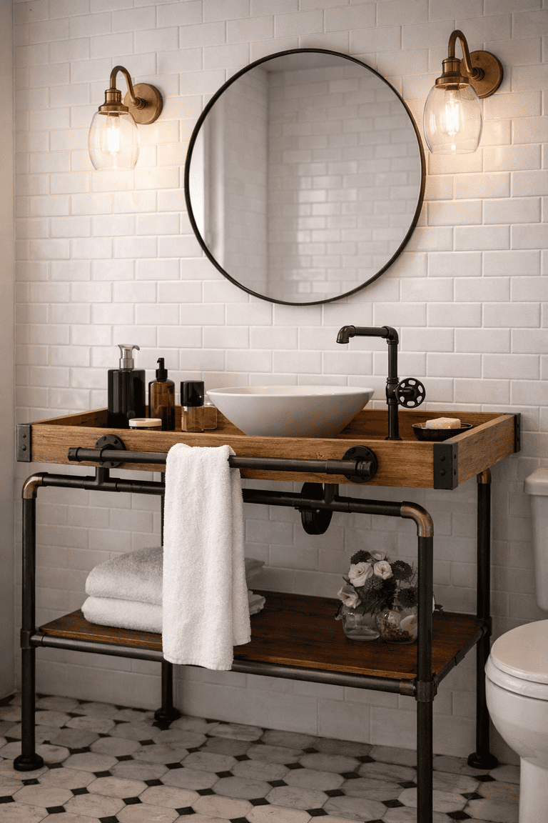Espelho redondo com acabamento bronze sofisticado.