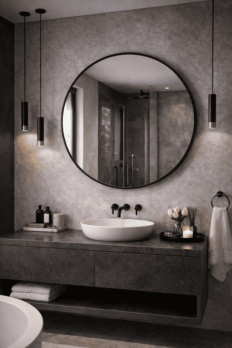 Espelho redondo sofisticado com moldura fosca elegante.