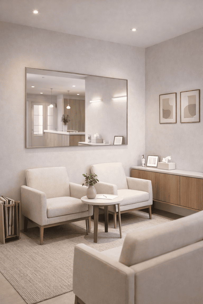 Espelho retangular sofisticado com moldura metálica fina.